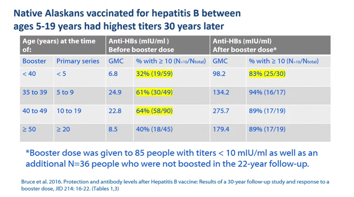 Antibody titers waned most rapidly in children who begin the primary series as infants, especially when vaccinated as newborns. Of children in the US vaccinated as infants, less than 17% had antibody titers at 16-19 years of age.
