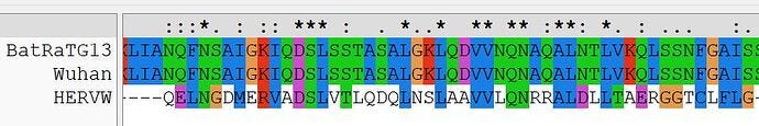 A second region of genome of SARS-CoV-2 that is of unknown function is the amino terminal region of S2, and it also convincingly aligns with both Syncytin-2 as well as HERV-K. Finally, there is a peptide region in the S1 of SARS-CoV-2 with the critical amino acids characteristic of retroviral immunosuppressive peptides.
