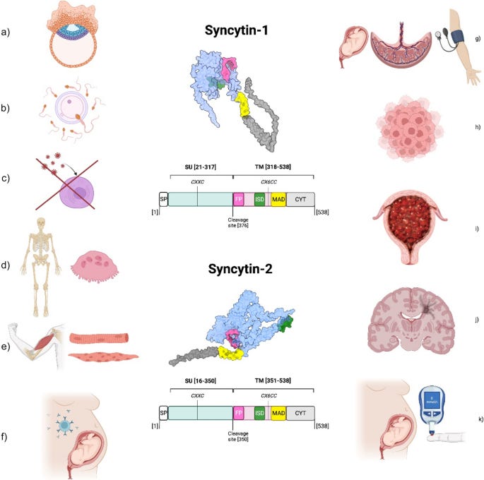 There is sequence as well as structural homology between the SARS-CoV-2 spike protein, Syncytin-1 and Syncytin-2.